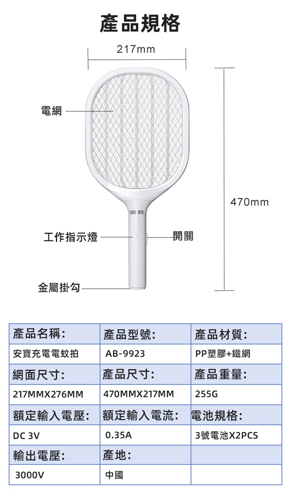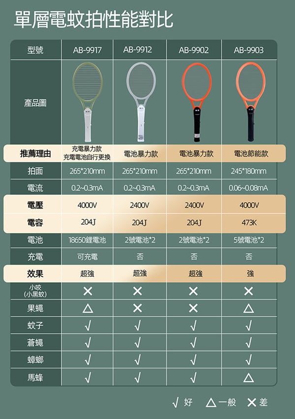 這AB-9923有著3000V高壓, 採用純物理滅蚊原理,無化學殘留、無刺鼻異味,對孕婦、嬰幼兒及寵物更友好。當蚊蟲接觸電網瞬間,高壓電能瞬間釋放,實現「一觸即滅」,無論是蚊子,還是體積更小的小蚊蟲,都能高效電擊,搭配省電線路設計,續航更持久,耐用性大幅提升.